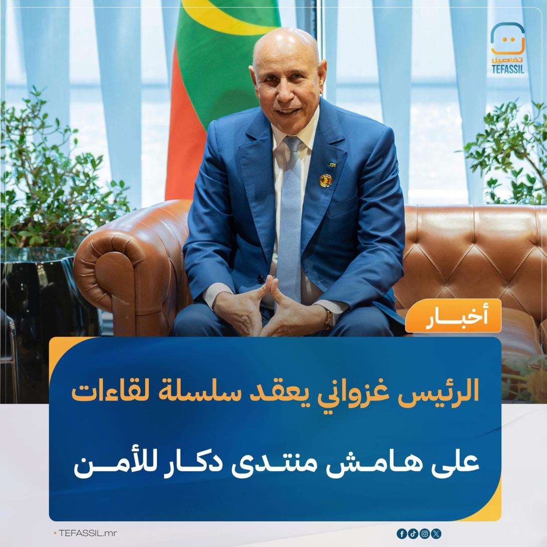 أجرى رئيس الجمهورية محمد ولد الشيخ الغزواني سلسلة لقاءات ثنائية على هامش منتدى دكار الدولي للسلام والأمن في إفريقيا المنعقد في داكار.